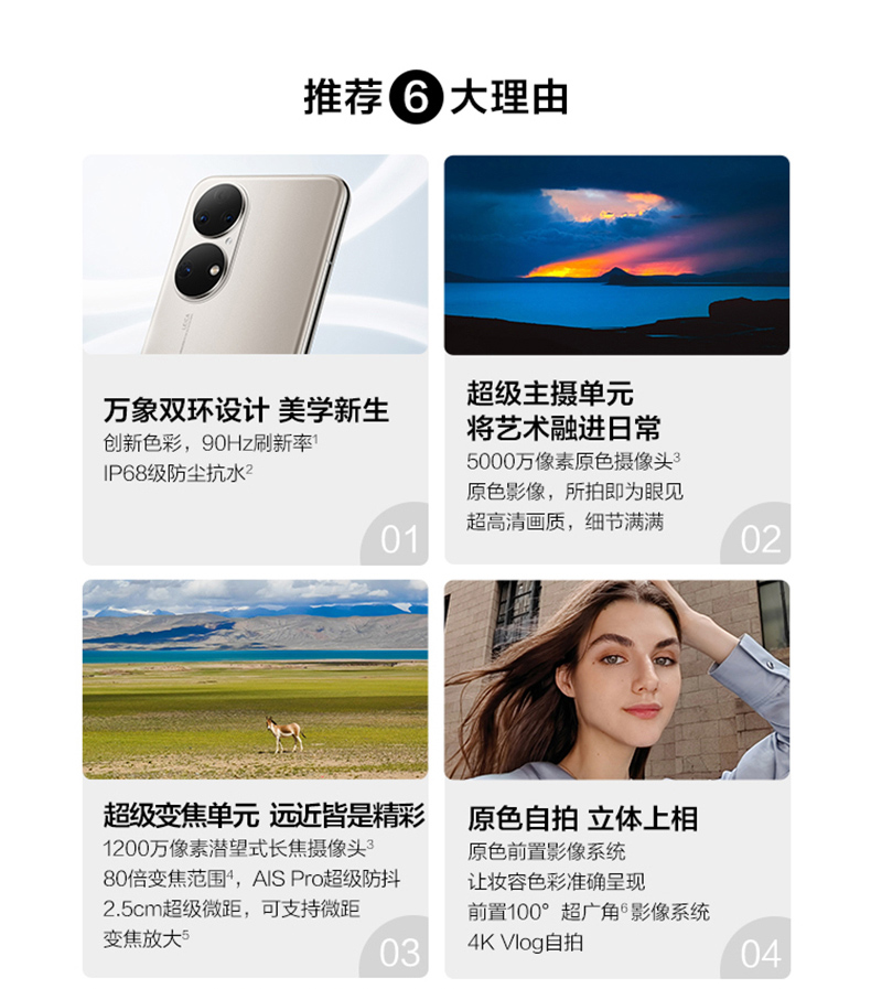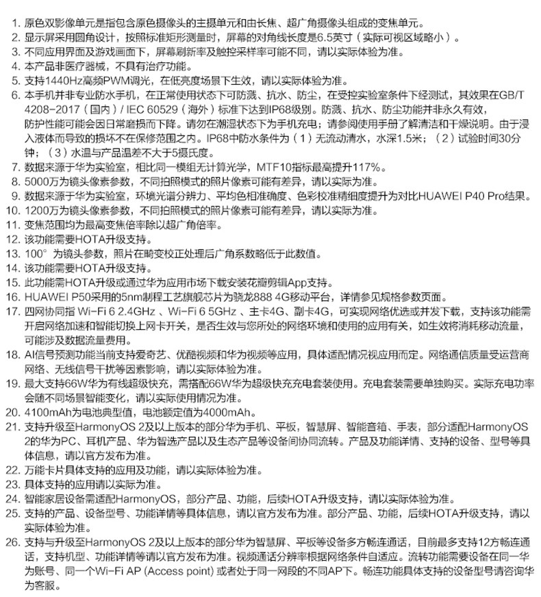 規(guī)格參數(shù) 拍照功能 后置攝像頭 5000萬(wàn)像素原色攝像頭+ 1300萬(wàn)像素超廣角攝像頭+ 1200萬(wàn)像素長(zhǎng)焦攝像頭 攝像頭類型 四攝像頭(前一后三) 顯示 分辨率 FHD+ 2700 x 1224 像素 屏幕尺寸 6.5英寸 網(wǎng)絡(luò) 網(wǎng)絡(luò)類型 4G 全網(wǎng)通 網(wǎng)絡(luò)模式 雙卡雙待 機(jī)身詳情 款式 直板 存儲(chǔ) 存儲(chǔ)容量 8+128GB 8+256GB 基本參數(shù) 品牌 Huawei/華為 華為型號(hào) P50 CPU核心數(shù) 八核 機(jī)身顏色 曜金黑 雪域白 可可茶金 手機(jī)類型 智能手機(jī) 操作系統(tǒng) HarmonyOS CPU品牌 高通