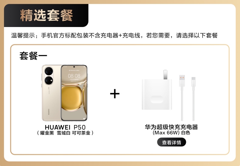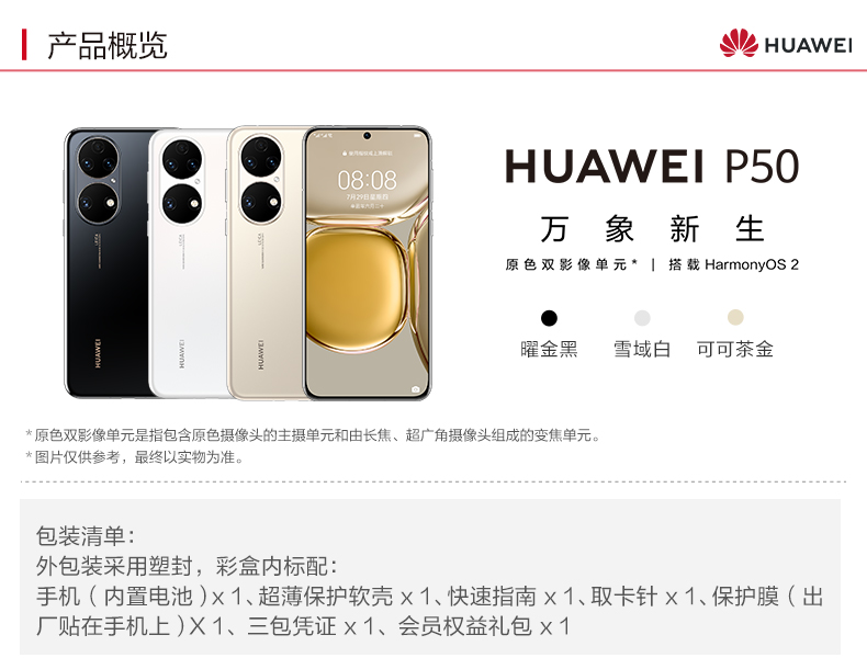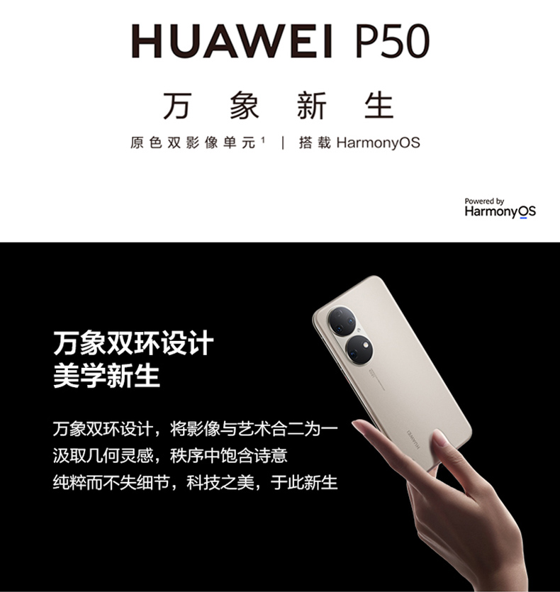 HUAWEI/華為 P50 HarmonyOS2原色雙影像單元新款華為智能手機(jī)新款華為官方旗艦店p50pro 曜金黑