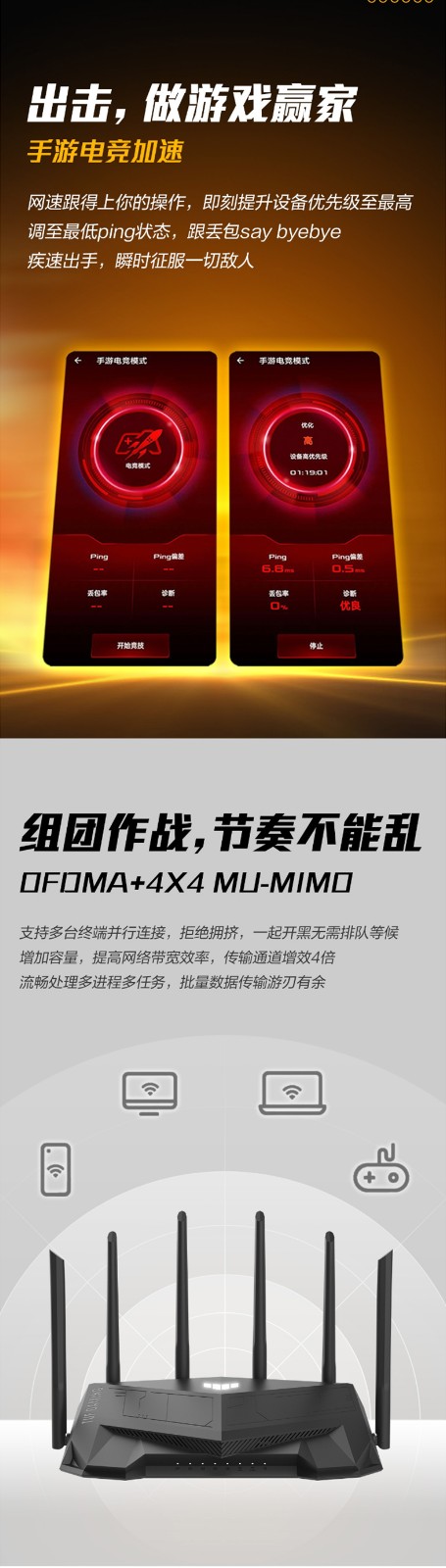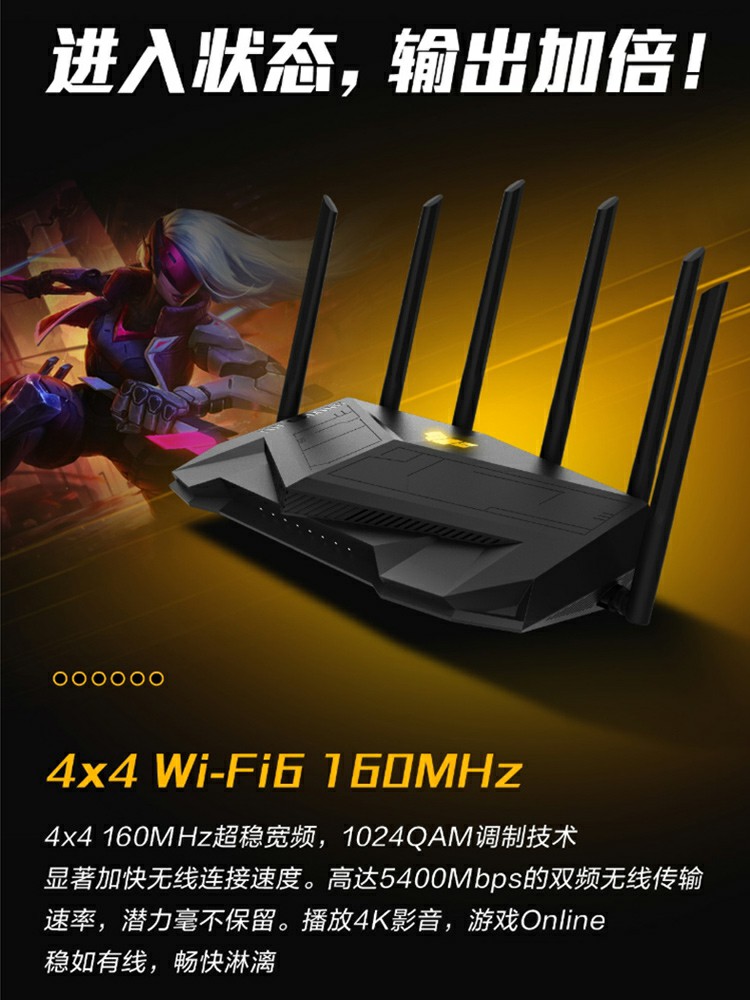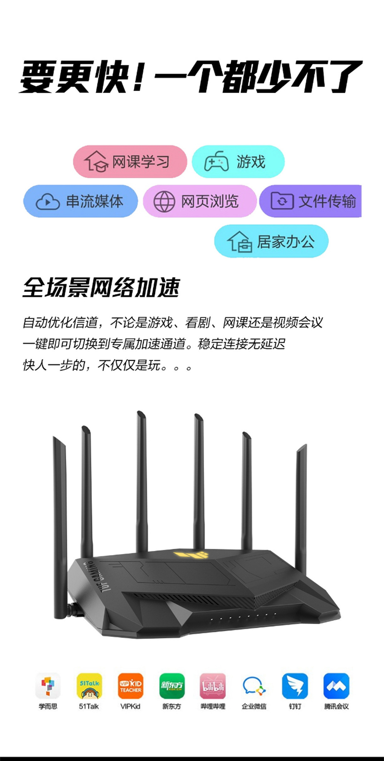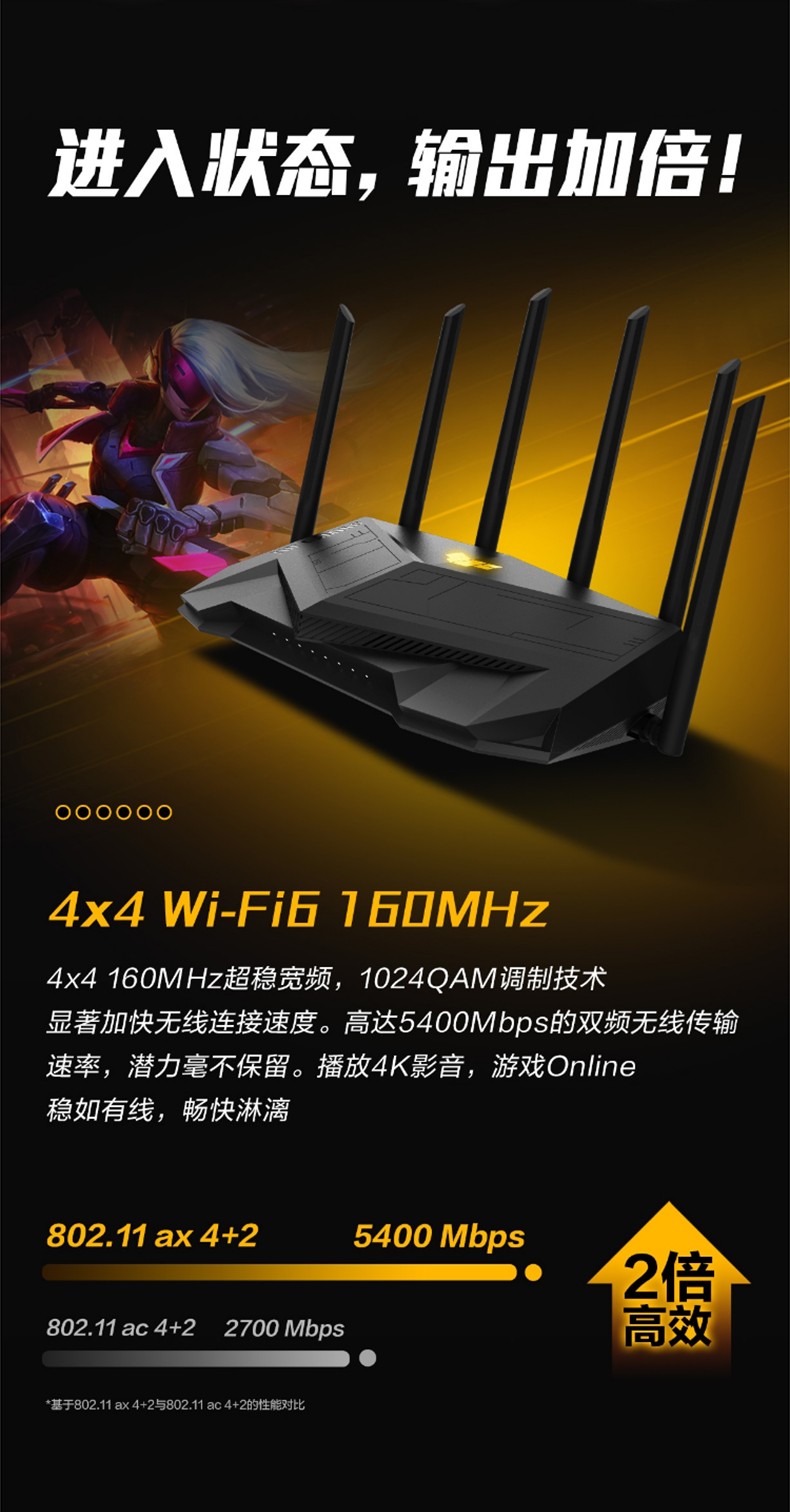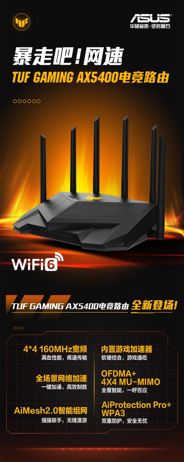 asus華碩TUFGAMINGAX5400穿墻王高速wifi6AX3000升級版雙頻無線千兆企業(yè)級wifi家用游戲加速端口路由器 千兆雙頻雙支裝