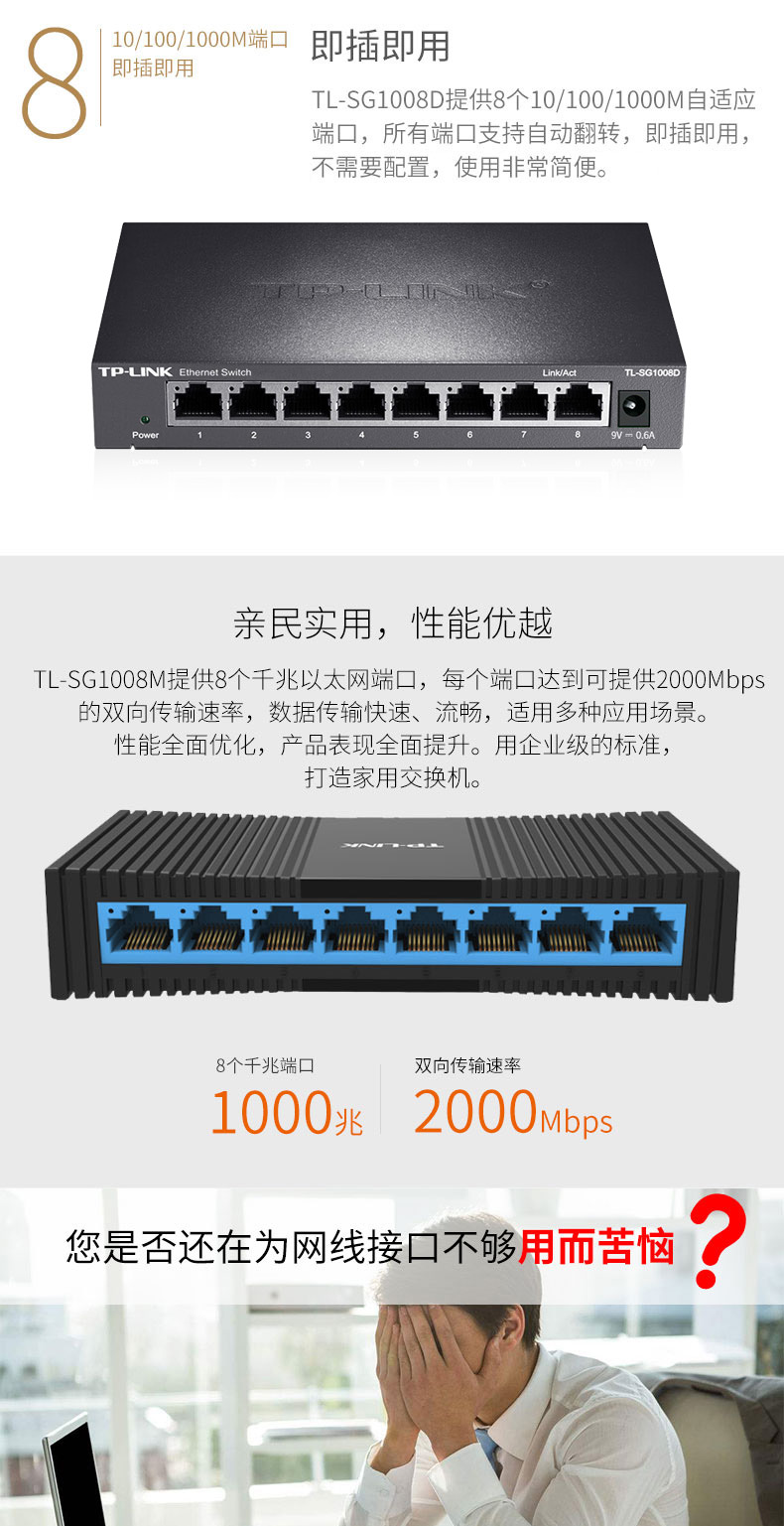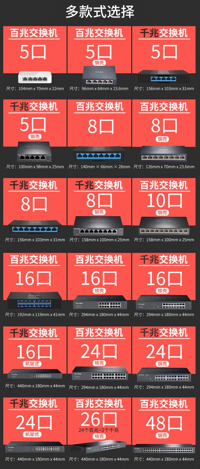 千兆高速口-TP-LINK5口8口16口千兆百兆交換機(jī)網(wǎng)絡(luò)交換器網(wǎng)線分線器24口tplink監(jiān)控宿舍家用POE家庭路由集線器